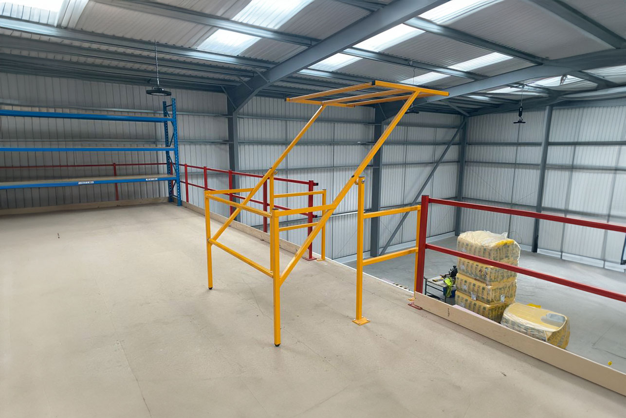 We can also provide edge and top chequer-wear plates to protect your edge and top surface from damage. First Floors will discuss the most suitable option for your mezzanine floor and, if needed, adapt our up-and-over style pallet gates to suit your specific requirements.